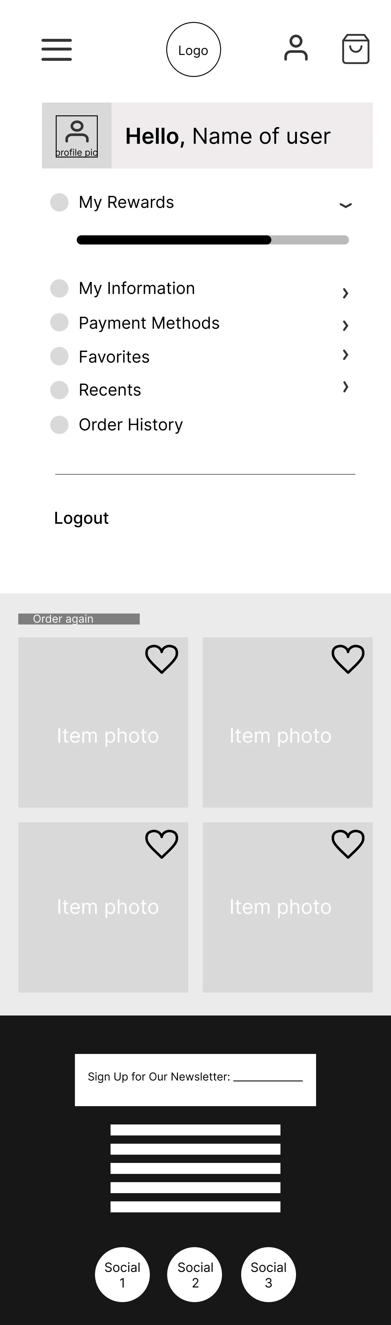 In the previous design, there was no way to interact with the rewards program. The addition of the profile page not only allows users to track points but also manage their account information, see order history, and view saved items