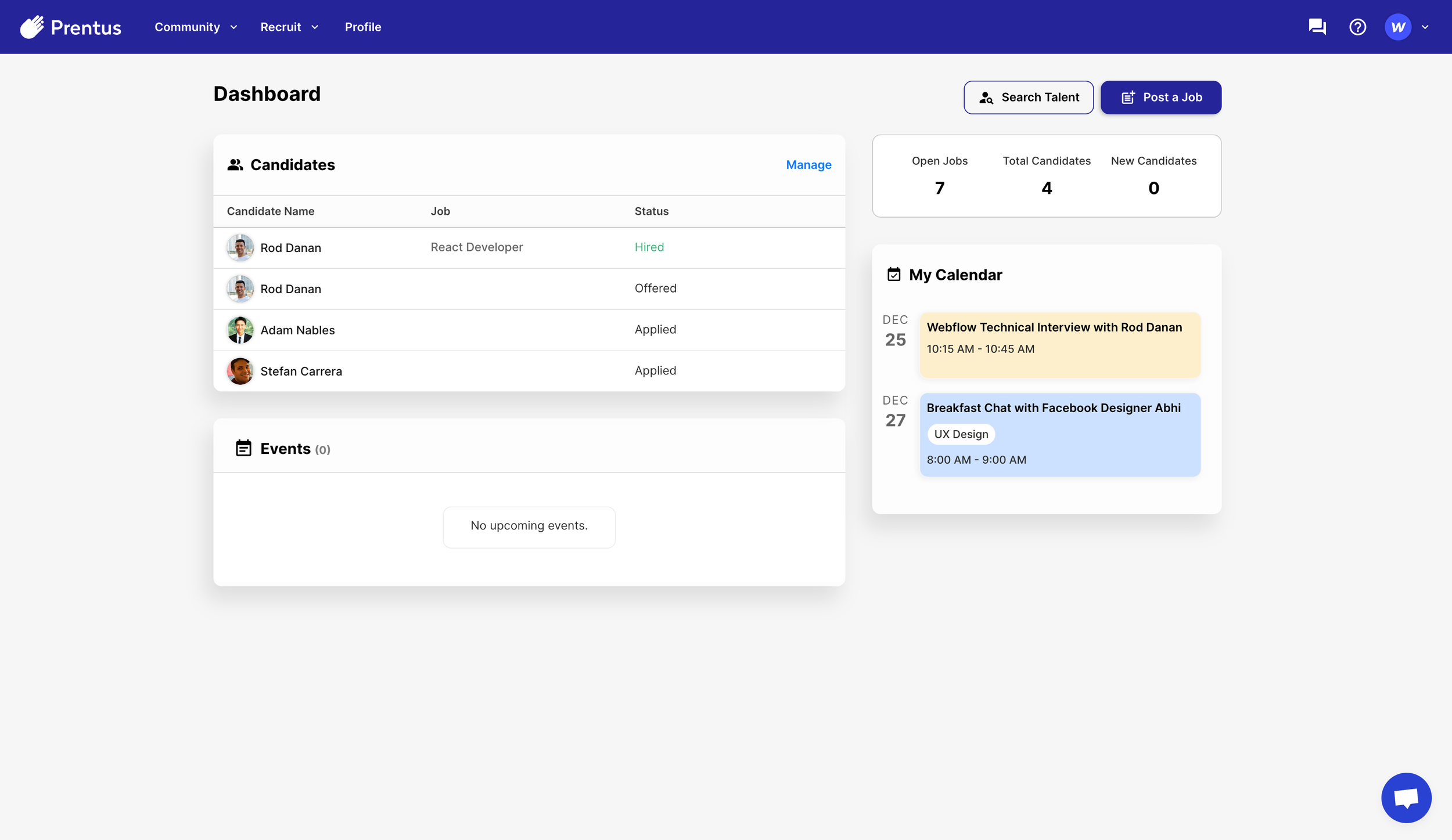 Scenario 1: You're a hiring manager and your company has decided to join the Prentus network.